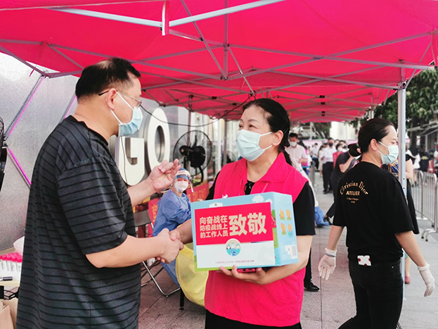 當(dāng)前疫情防控正處在關(guān)鍵階段,6月7日下午,中裝建設(shè)黨委聯(lián)合人民橋社區(qū)人大代表聯(lián)絡(luò)站積極響應(yīng)倡議,帶頭加強(qiáng)個(gè)人防護(hù),帶頭宣傳引導(dǎo),帶頭走進(jìn)社區(qū),開(kāi)展“走進(jìn)社區(qū) 關(guān)懷一線”慰問(wèn)活動(dòng),為人民橋社區(qū)抗疫一線工作人員送去水果、點(diǎn)心和茶飲,向奮戰(zhàn)在防疫戰(zhàn)線上的工作人員致敬,助力社區(qū)一線疫情防控工作,齊心協(xié)力,早日打贏這場(chǎng)硬仗。