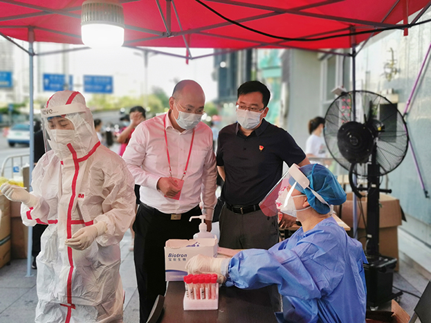 活動(dòng)現(xiàn)場(chǎng),中裝建設(shè)黨支部還組織黨員志愿者先鋒隊(duì),堅(jiān)定投身疫情防控第一線和最前沿,積極開(kāi)展核酸檢測(cè)、秩序維護(hù)等工作。