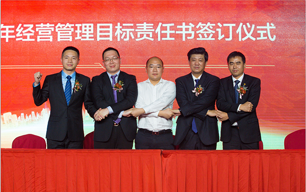目標(biāo)清晰,使命在肩。經(jīng)營管理層當(dāng)場簽訂“軍令狀”——2018年度《經(jīng)營管理目標(biāo)責(zé)任書》,確定目標(biāo),明確責(zé)任,確保全面完成或超額完成2018年度各項(xiàng)目標(biāo)任務(wù)。
