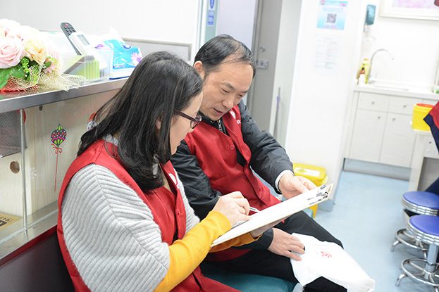 下午16時(shí)許,參加義務(wù)獻(xiàn)血的員工志愿者來到獻(xiàn)血地點(diǎn),在工作人員的引導(dǎo)下,登記信息、測量血壓、抽血化驗(yàn),血液檢驗(yàn)合格后開始無償獻(xiàn)血。